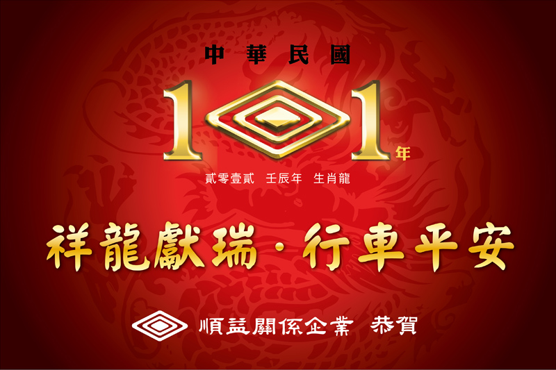 迎接2012新的一年~順益關係企業恭祝所有車主「祥龍獻瑞‧行車平安」, 在新的一年裏「龍騰獻瑞財旺來‧金龍兆福步步高」