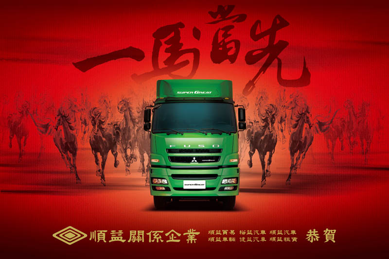「金蛇擺尾辭舊歲,萬馬奔騰迎新春」,迎接2014甲午新的一年,順益關係企業祝您在新的一年裏:「一馬當先事業順,萬事順心又如意。」