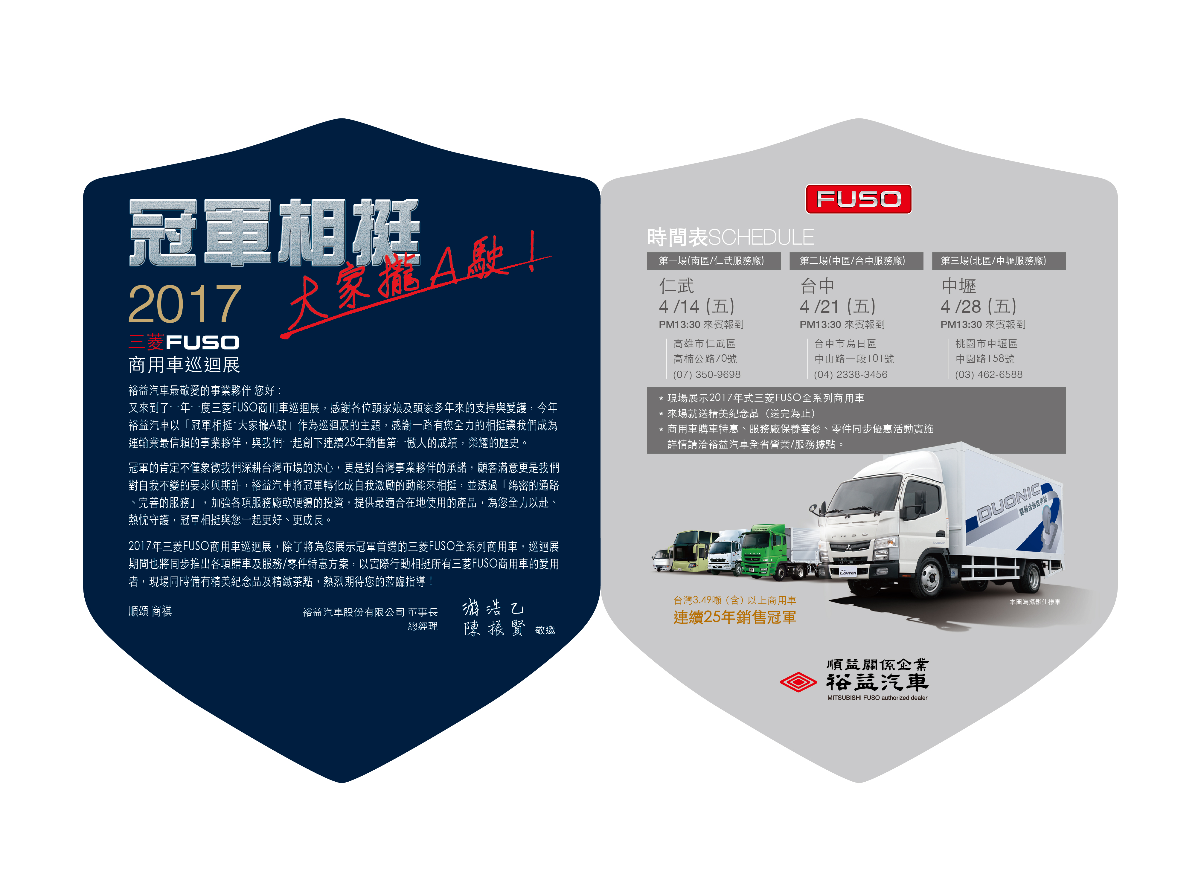 冠軍相挺 大家攏A駛! 2017三菱FUSO商用車巡迴展(4/14南區-仁武、4/21中區-台中、4/28北區-中壢)
