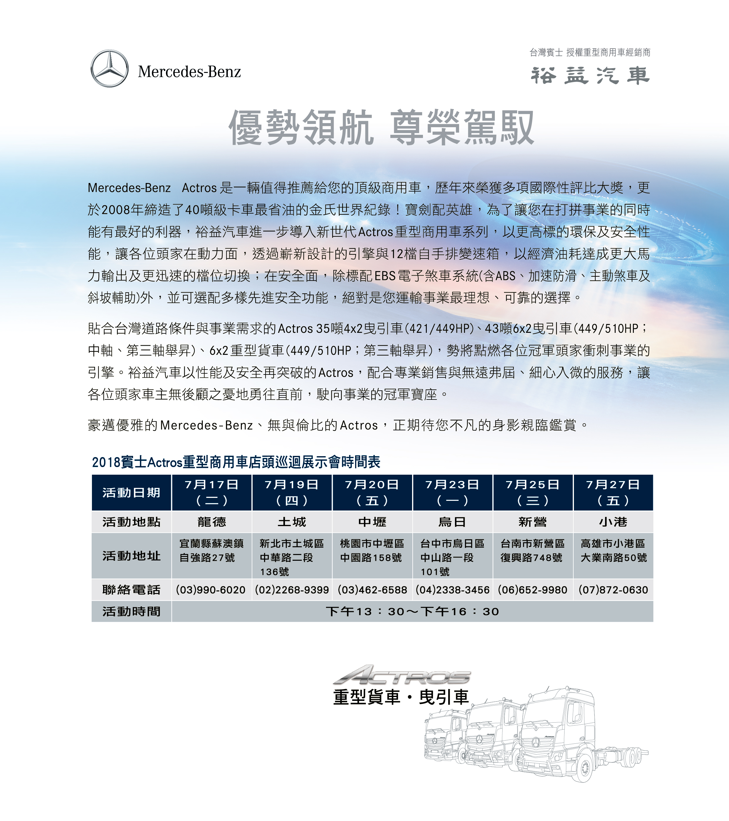 2018賓士Actros重型商用車店頭巡迴展即將啟程