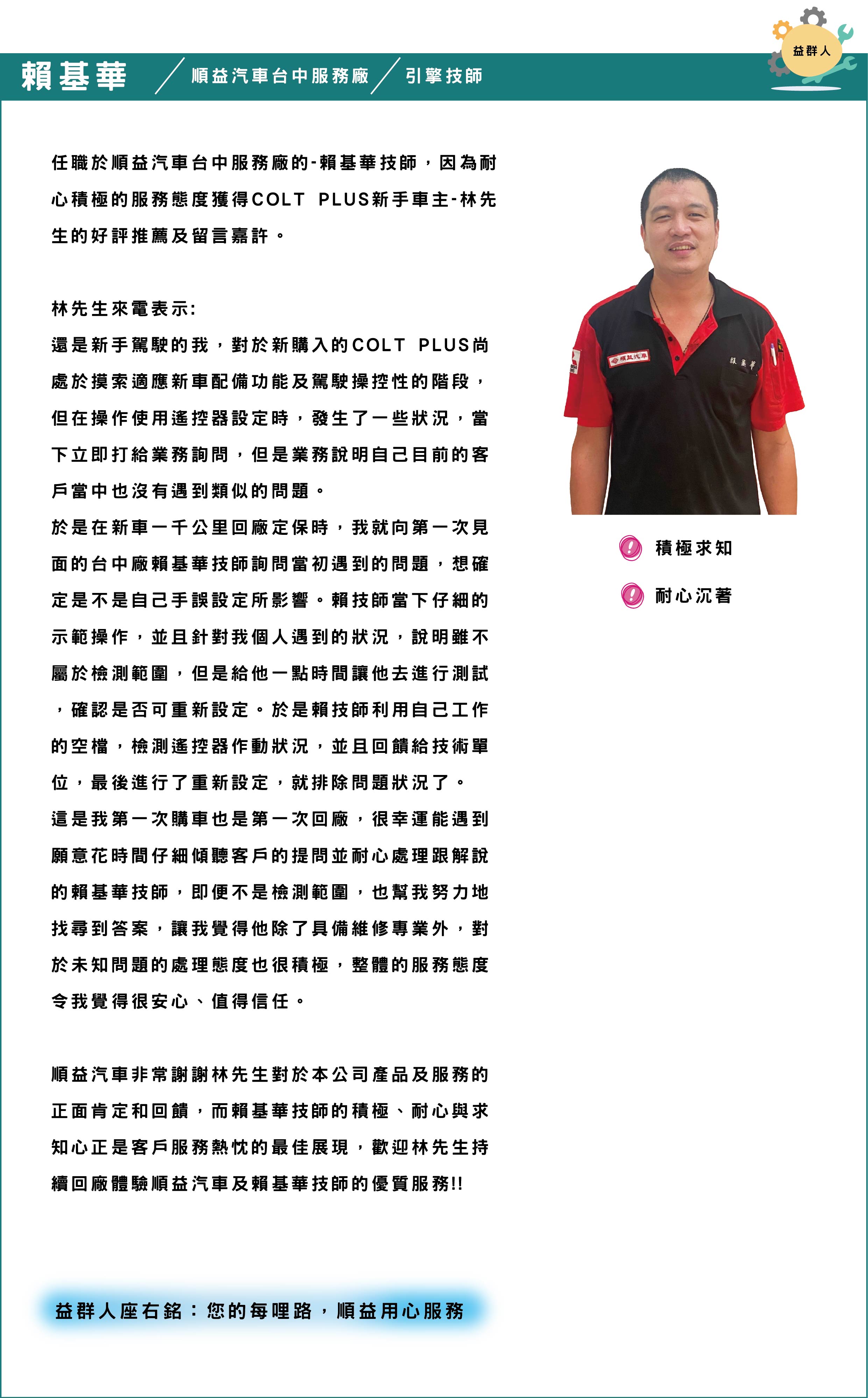 客戶推薦-順益汽車台中服務廠-賴基華