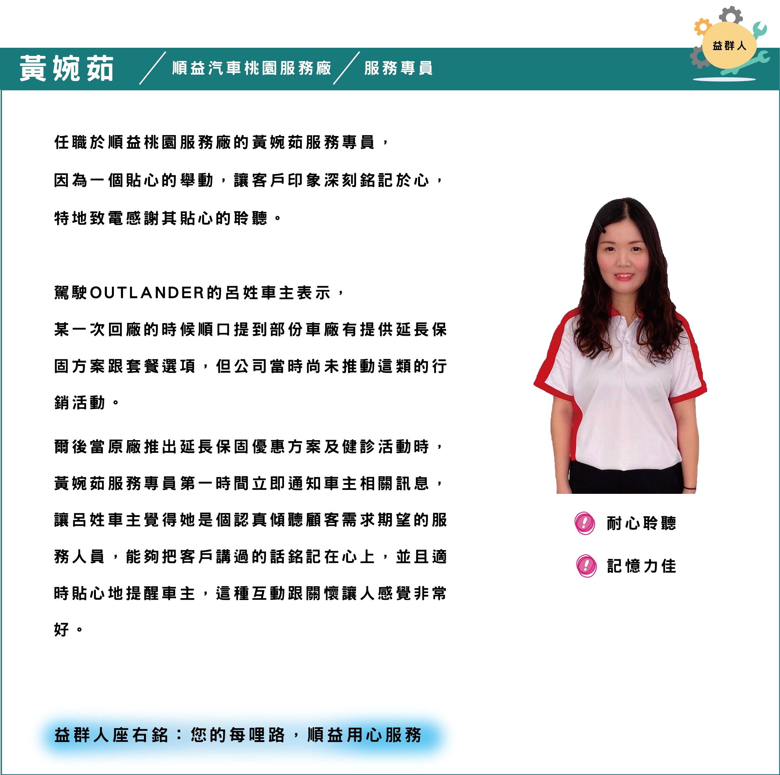 客戶推薦-順益汽車桃園服務廠-黃婉茹